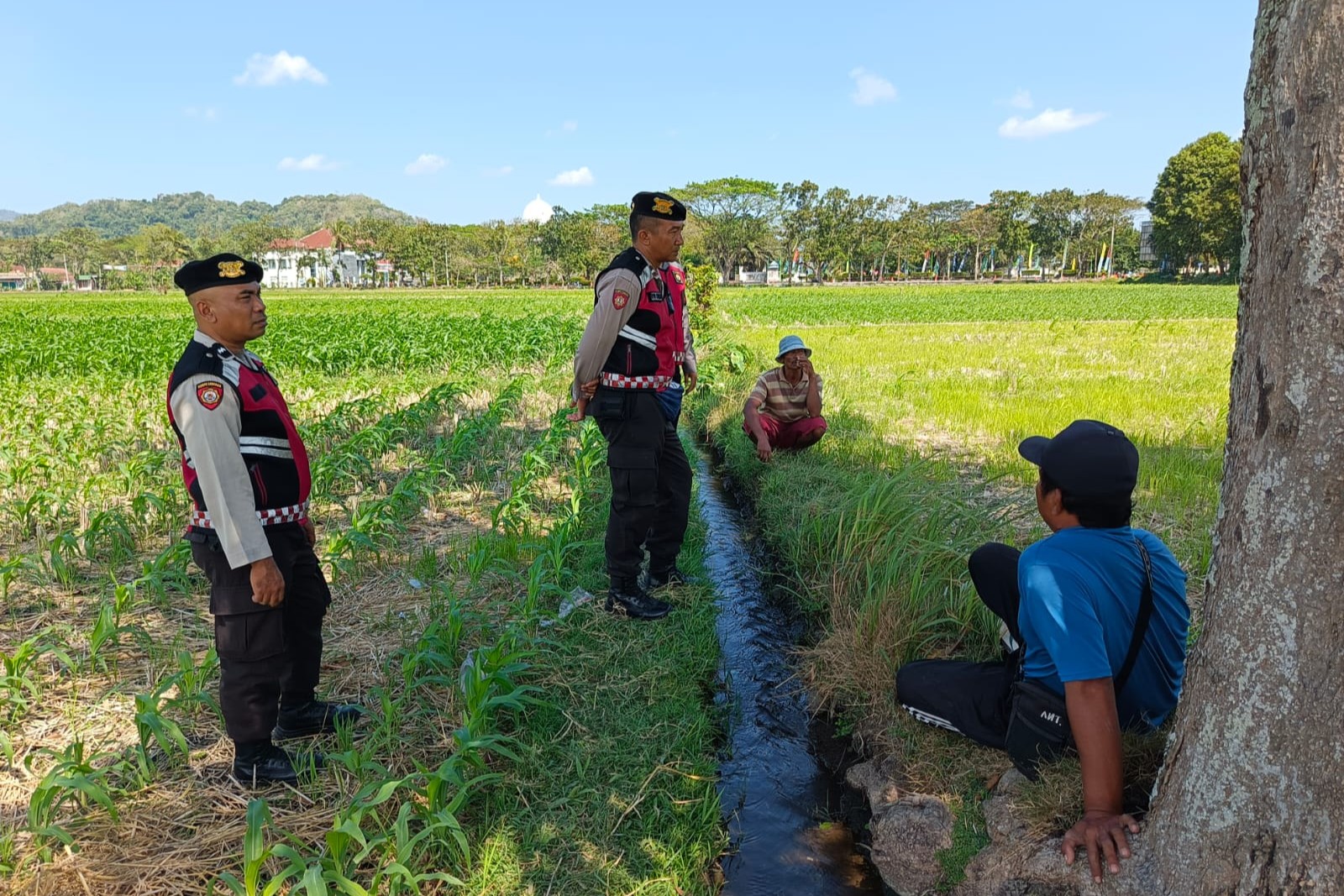 Pada hari Minggu, 10 Agustus 2025, pukul 09.45 WITA, personel Unit Patroli Samapta Polres Lobar menyambangi Desa Tempos, Kecamatan Gerung, Kabupaten Lombok Barat. Kedatangan mereka bukan hanya sekadar patroli rutin, melainkan juga untuk memantau langsung kondisi lahan pertanian jagung serta berdialog dengan para petani setempat.